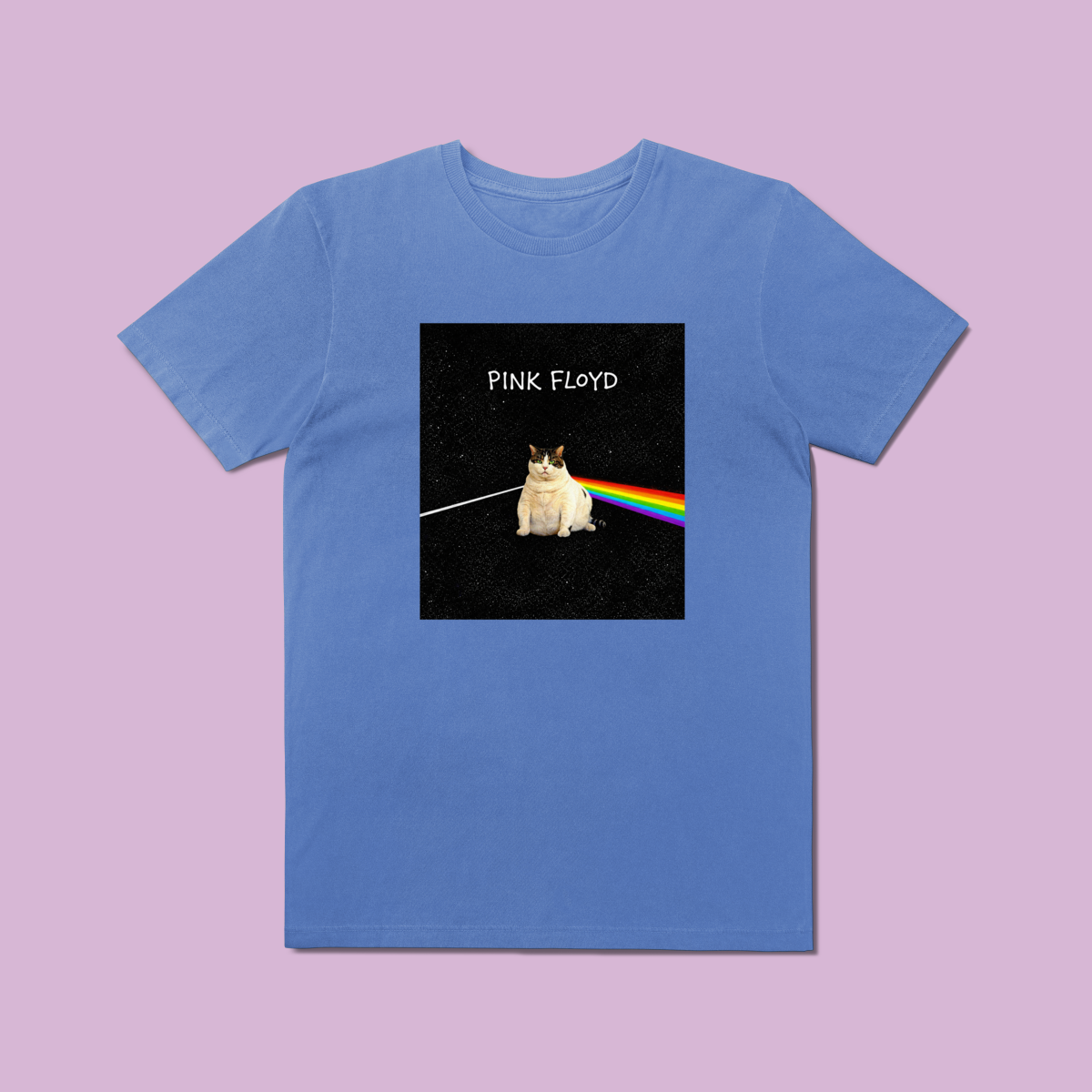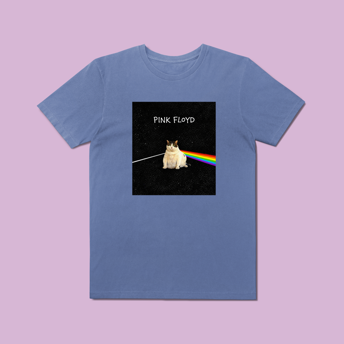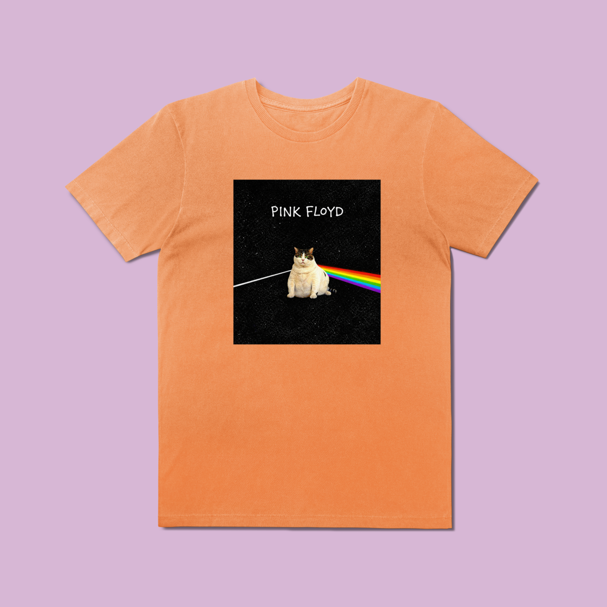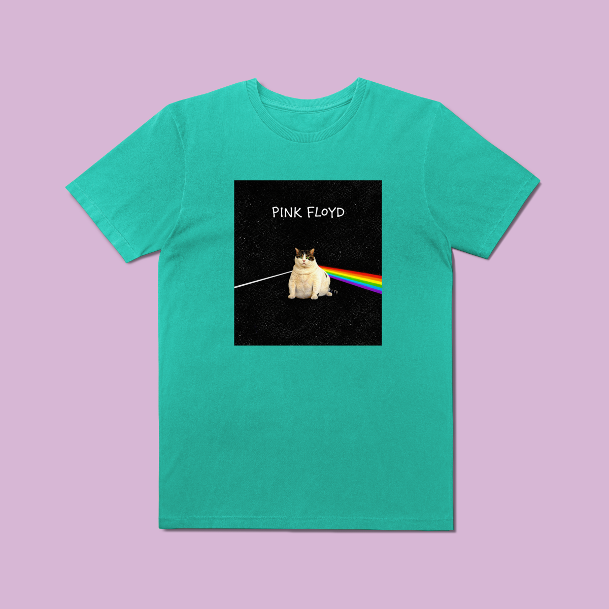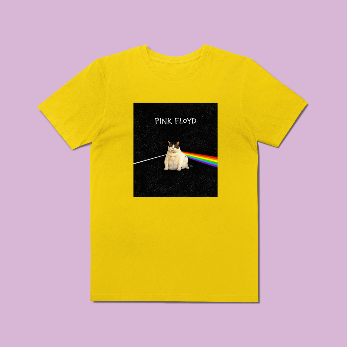 Se você é fã de rock progressivo e não vive sem seu companheiro felino, a Camiseta Prime "The Dark Side of the Cat" foi feita para você. Inspirada em uma das capas de álbum mais lendárias de todos os tempos, esta estampa substitui o prisma clássico pela silhueta mística de um gato, transformando a luz em um arco-íris de estilo e atitude.