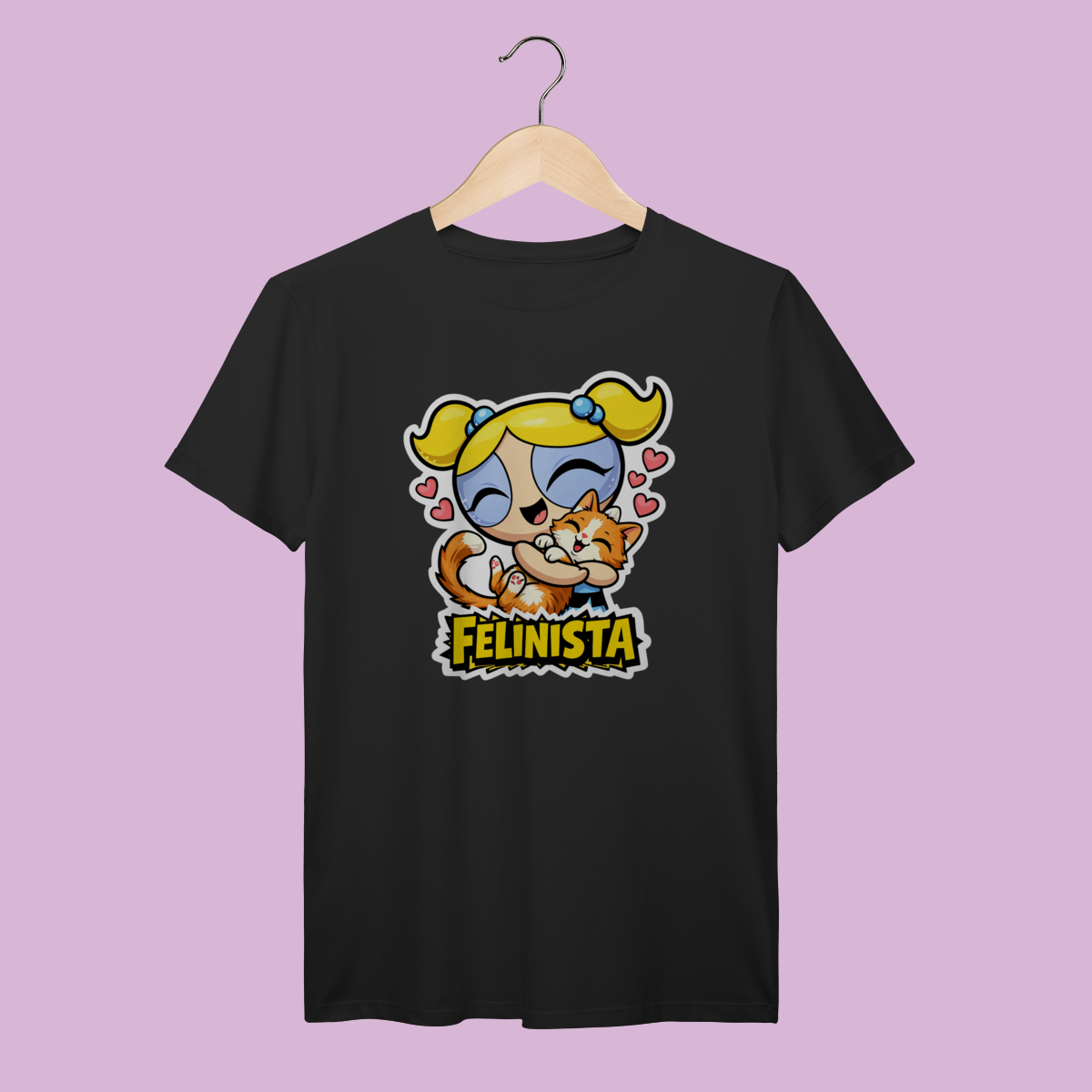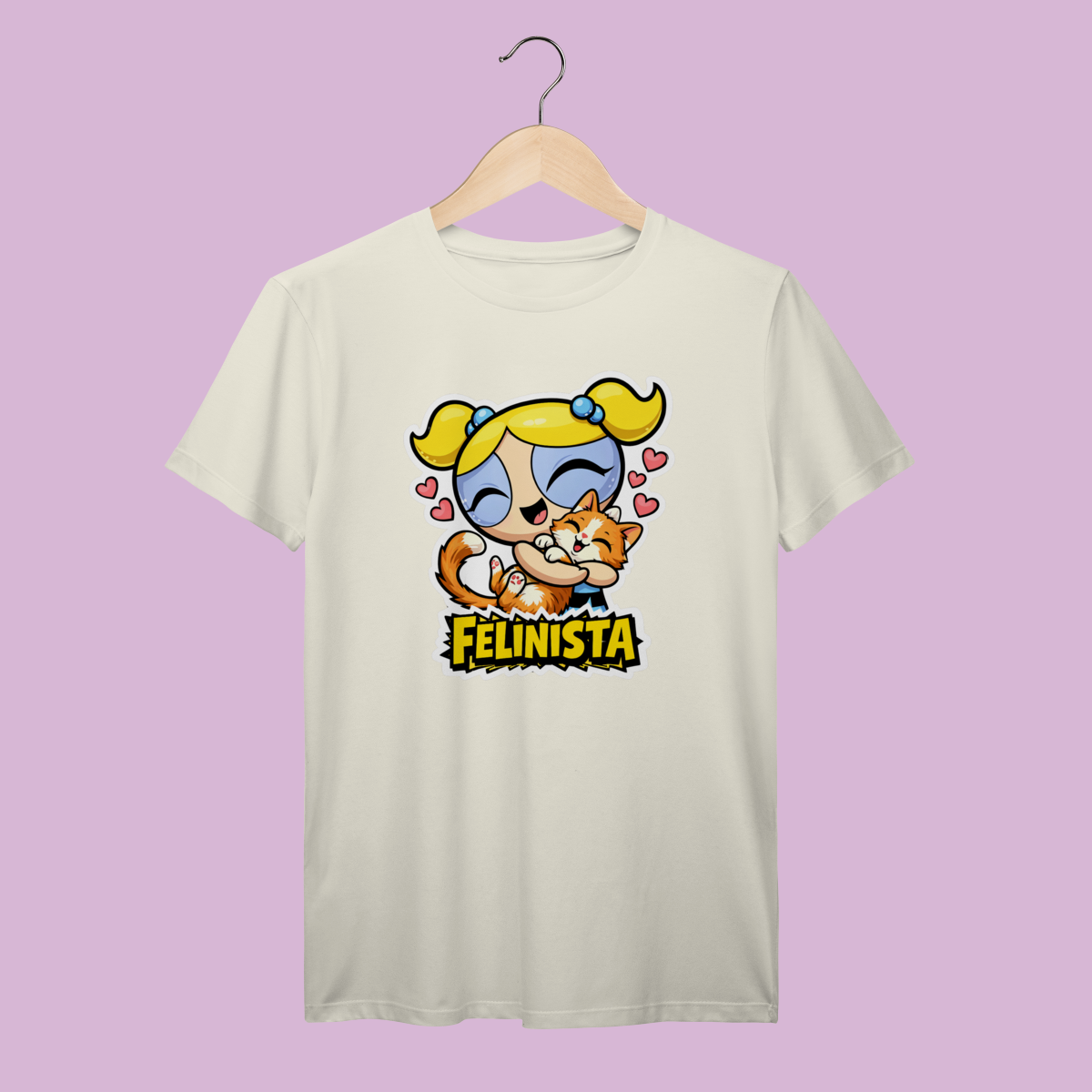 A Camiseta Prime Felinista é o encontro perfeito entre o estilo girl power dos anos 90 e a sua paixão felina. Com a Lindinha provando que até as super-heroínas se rendem a um colo de gato, essa peça traz aquela nostalgia deliciosa com um toque de exclusividade. É a escolha ideal para quem quer salvar o dia com um look impecável, confortável e cheio de personalidade.